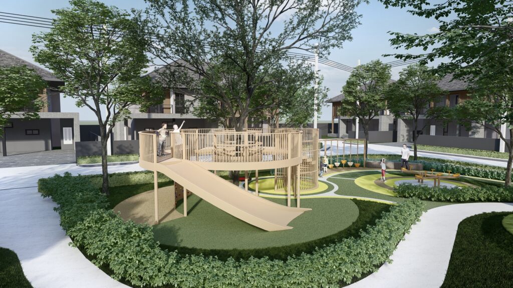 สนามเด็กเล่น “ใน” โครงการบ้านเดี่ยว จึงมีความหมายมากกว่าแค่เรื่องสนุก เพราะมันคือ การออกแบบสภาพแวดล้อมการเติบโตของเด็กแบบยั่งยืน