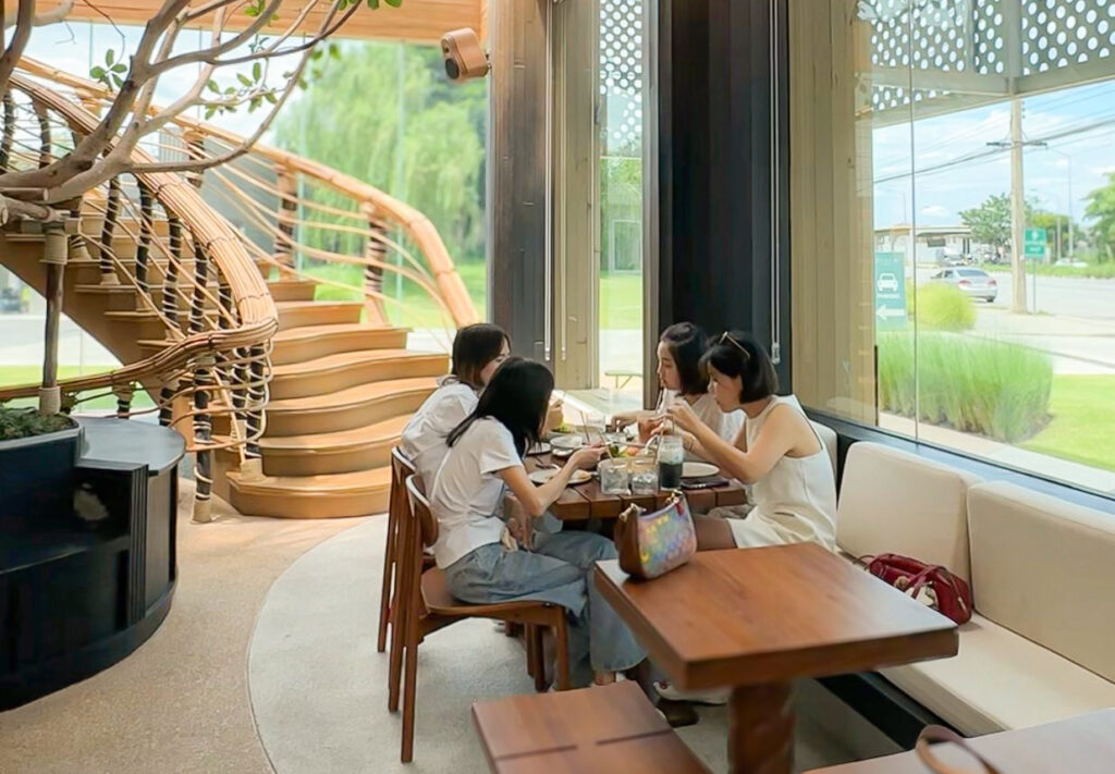 อีกหนึ่งคาเฟ่ยอดนิยมของคนในย่าน บ้านเดี่ยว พระเทพตัดใหม่ คือ A-List Cafe ซึ่งออกแบบในสไตล์ Modern Loft เรียบง่ายแต่ดูทันสมัย จุดเด่นคือพื้นที่กว้าง โล่ง โปร่ง ล้อมรอบด้วยต้นไม้ ทำให้บรรยากาศเหมาะกับการทำงานระยะยาว ไม่รู้สึกอึดอัด